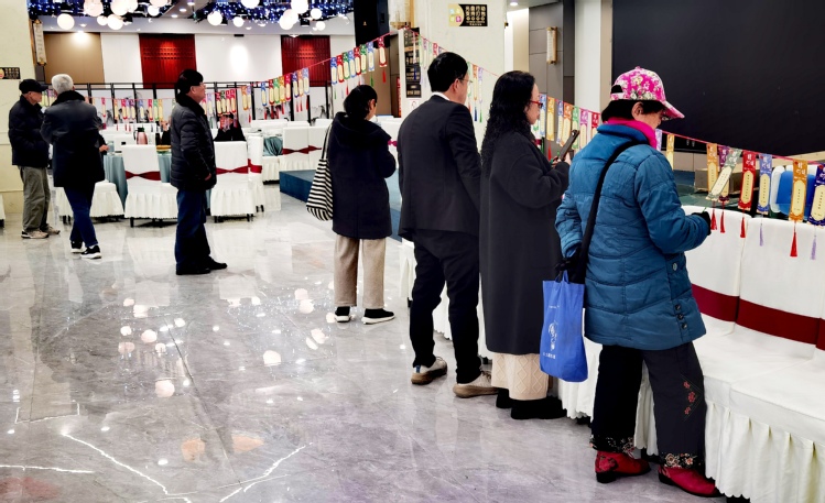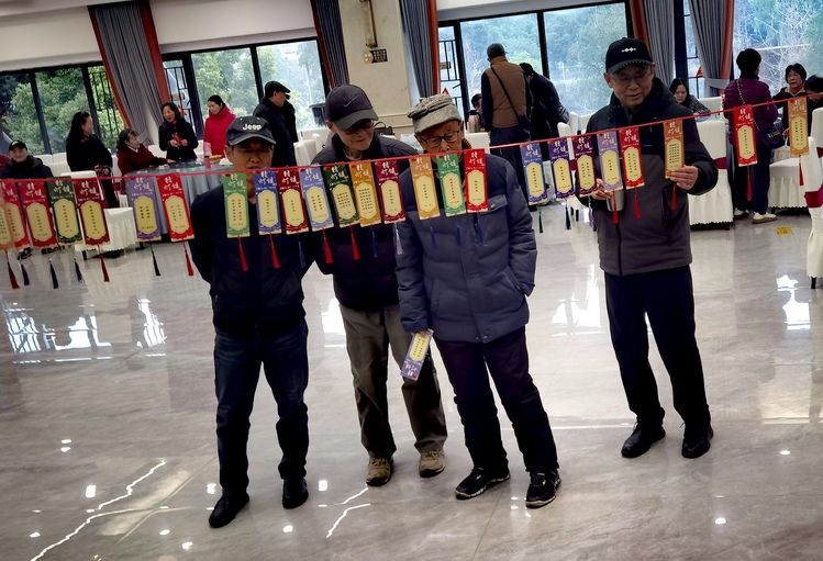 12月23日,盐都大地寒风凛冽、冬意浓浓,釜溪河畔的德盛源大厅内却温暖如春,丹桂小组2026年新年团拜活动在此温馨举行。活动现场张灯结彩,一条条灯谜悬挂点缀,在明亮灯光的映照下,平添了许多喜庆与雅趣。